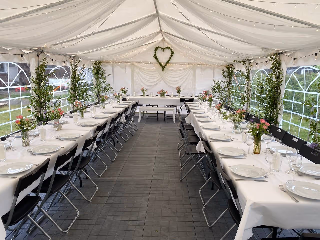 Hos oss finns allt för ditt event – partytält, möbler och festutrustning.