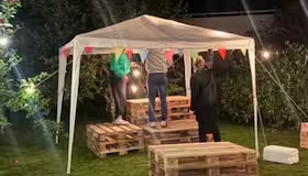 Observera: Vid kraftig vind eller ogynnsamma väderförhållanden kan tältet ombokas med leverans och montering, eller avbokas på grund av säkerhetsskäl.